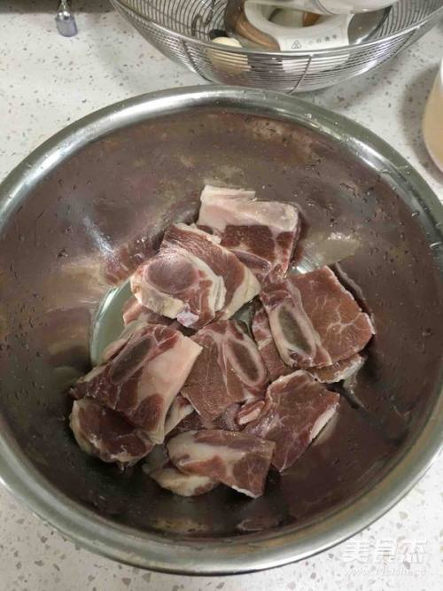 3反复冲洗剪成小块的牛仔骨,把血水冲洗干净