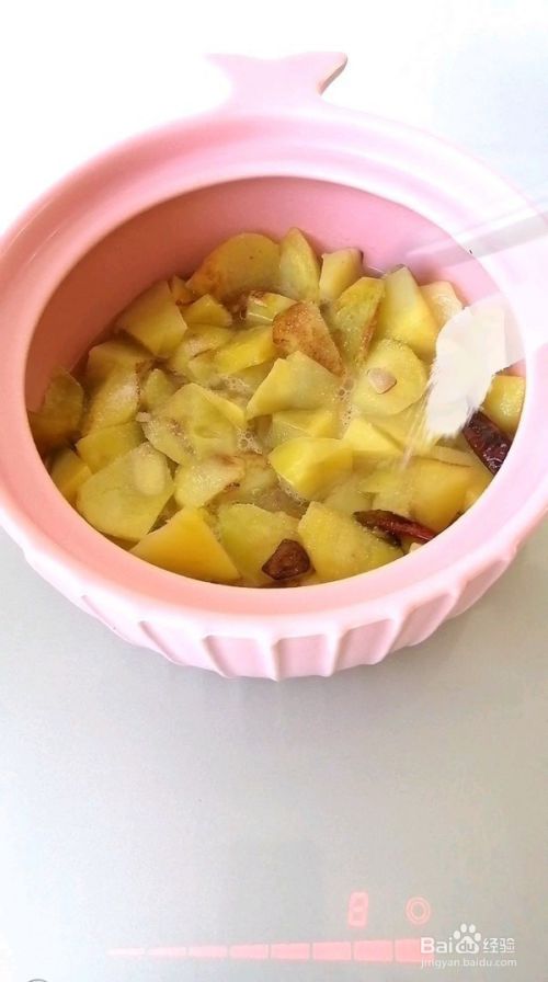 土豆煎好,倒入砂锅,加水,放入姜丝葱丝等调理