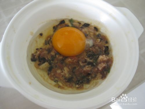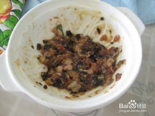 再加入木耳拌匀,加入适量的清水调好肉末,至水份完全吸收