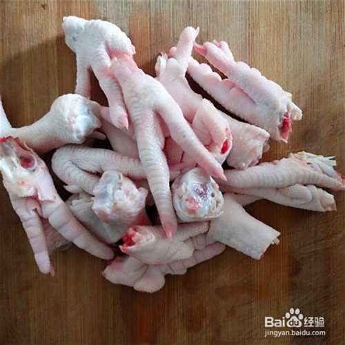 2、锅中倒入凉水,放入鸡爪,调入料酒,焯水两分钟,捞出来,沥掉水分。