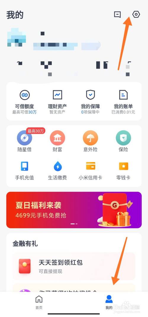 小米手机打开钱包APP后,在我的页面上方点击设置图标。