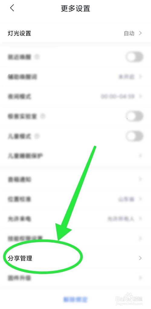 第三步:在更多设置页面,向下滑动至底部,即可看到“分享管理”,点击打开;