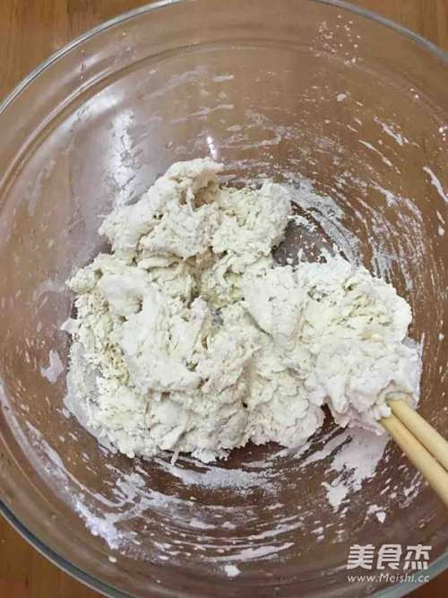2面粉,玉米粉,黑豆粉,少许盐拌匀,慢慢的加入酵母水,至雪花状,不要太干也不要太湿,呈这样的状态就停止加水,然后揉成光滑的面团发酵至两倍大。