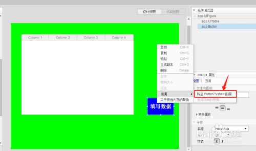 选中按钮组件后点击鼠标右键,弹出按钮组件属性右键下拉菜单,在菜单中选择添加回调