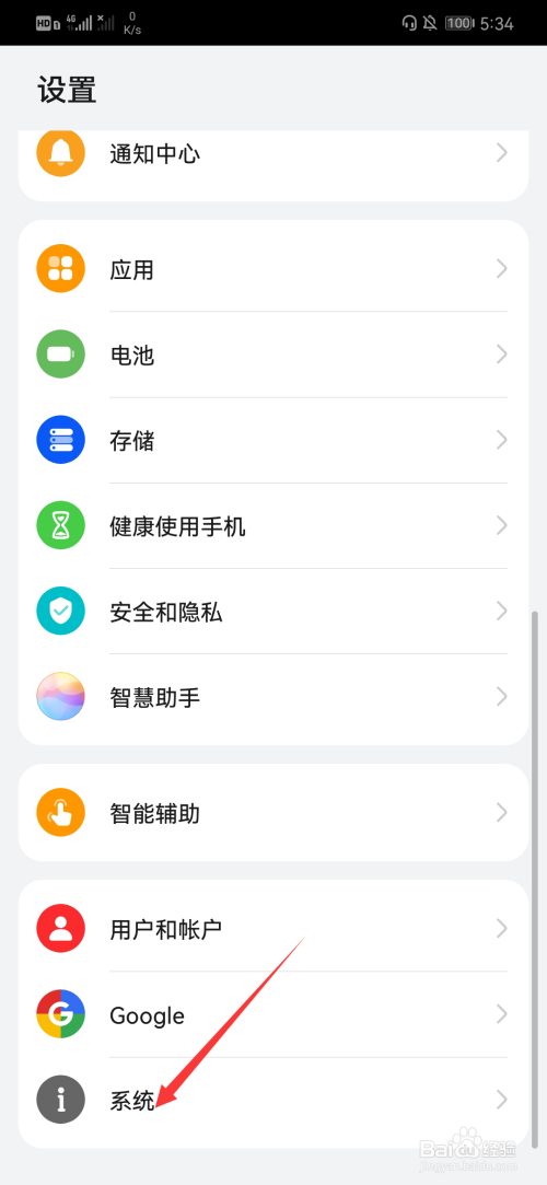 打开手机设置功能,选择系统。