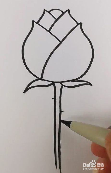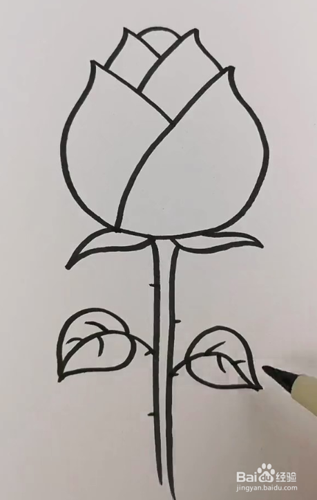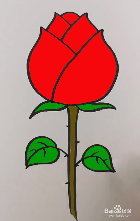 给玫瑰花涂上颜色,一朵漂亮的玫瑰花就画好啦。