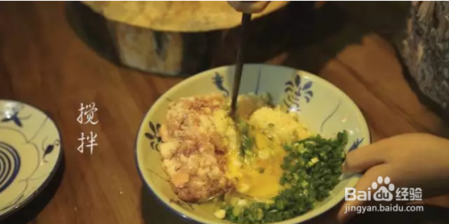 ❥ 接着将葱切碎,加入盐、鸡精、2只鸡蛋伴好?