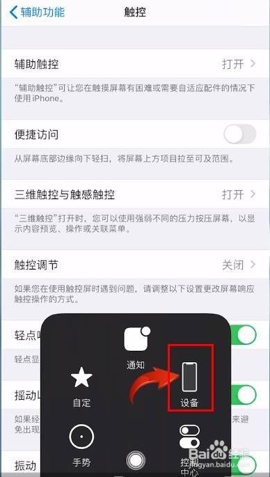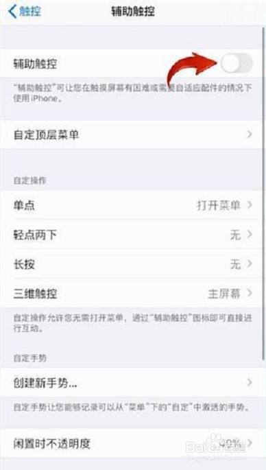 点击【辅助触控】,将【辅助触控】右侧的开关打开。