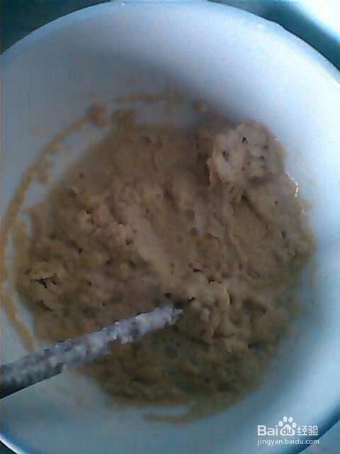 这时候把磨好的米浆,花生浆,以及用温开水化好的酵母全部搅在一起,用筷子使劲搅动,把米浆调匀。还有就是喜欢做成甜食的朋友可以在此时加入白糖,但嘟嘟不建议这样做,毕竟甜食我们要少吃,再说大米发糕属于黏食品,再加上糖,对消化不是很好的。