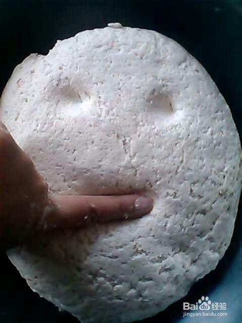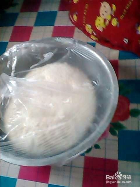 和好的面团表面看起来不像单纯的面粉面团那般光滑,这没关系因为里面有米浆的原因。把面团用保鲜膜或者白色塑料袋盖好,放在暖和的地方等待面发起来,看,嘟嘟的面都占了嘟嘟的热炕头呢。