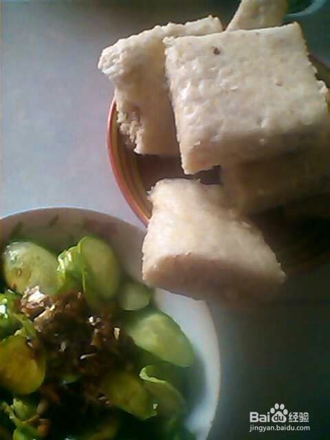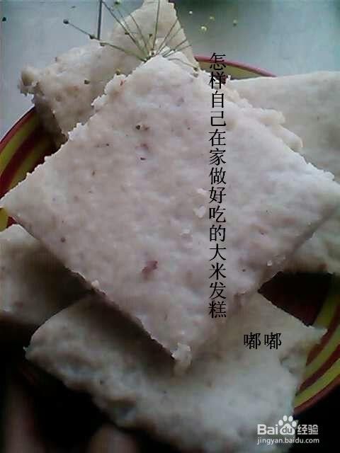 一般蒸馒头需要三十分钟的话,蒸大米发糕就要四十分钟。当然你也不要局限于那几分钟,火势大小也有关系对不对。大约四十分钟后,香香的米香味就会散发出来了,打开锅用手轻轻一按,如果按的那个浅浅的凹能鼓起来就是熟了,当然要轻轻按。这时候把刀两面沾水,切成你想要的形状,取出来稍凉,就可以开吃了。