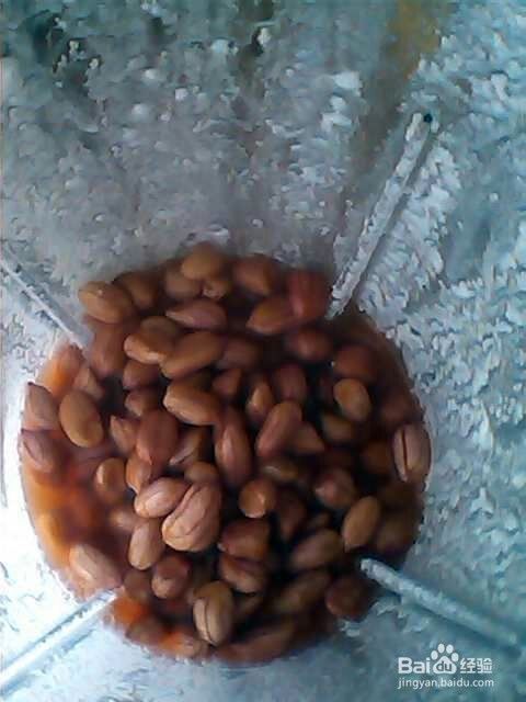 花生浆也和大米浆一样,把泡好的花生倒进料理机内,加入一丁点水或者直接加入一些打好的米浆,直接打成花生浆就好。