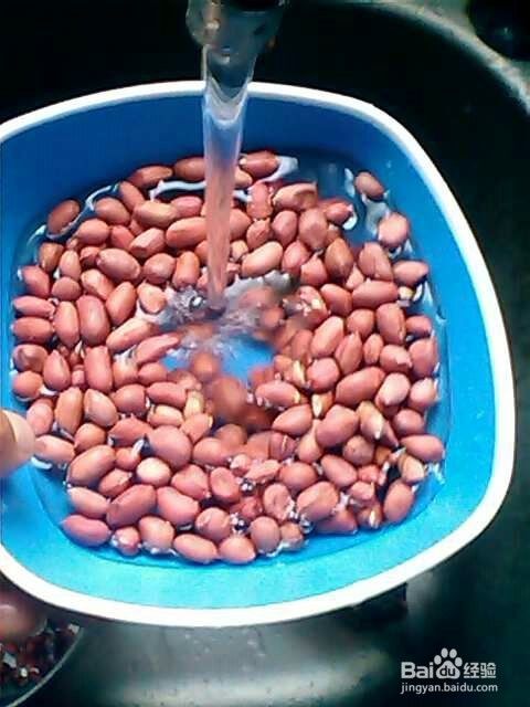这个可以不用,因为是嘟嘟自己的创意嘛所以用了,尝了尝味道还可以。不用太多,一把生的花生豆就可以了,不用热水,直接用凉水泡发,注意的是要事先洗一下花生。