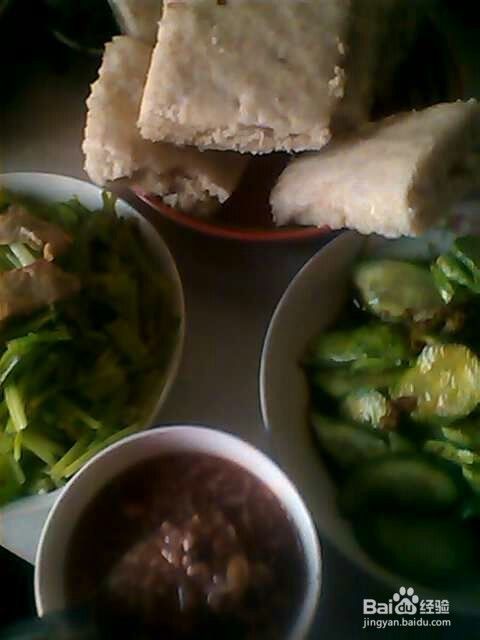 大米发糕软软糯糯,搭配青菜和粥是最好的选择。一来营养健康,二来好消化。看看嘟嘟,熬的是花生红豆粥,一盘凉拌黄瓜,一盘瘦肉炒芹菜,有荤有素,有主有辅,搭配合理,颜色还漂亮呢,一家人坐在一起,幸福如此简单,健康饮食,如此简单。(请忽视图中少了一个角的发糕,那时第一时间进入嘟嘟肚肚里旅游的发糕)