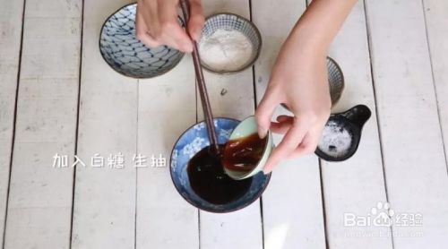 在小碗里加入白糖、生抽、蚝油、淀粉、水,并搅拌均匀。