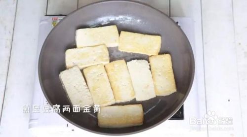 先热好油,把豆腐平铺到锅里。煎至豆腐两面金黄,夹到煲里。