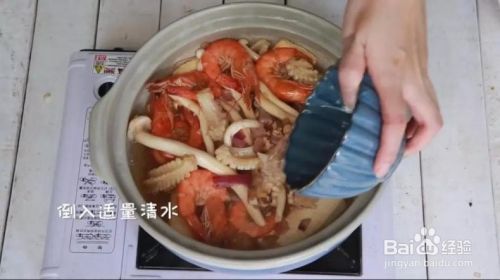 接着倒入适量清水,盖上盖子,中火炖5分钟。