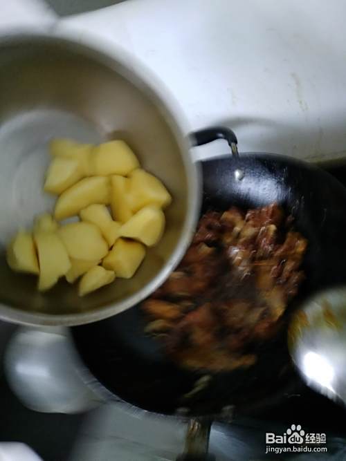 然后添加调味品盐、酱油、十三香后盖上锅盖进行炖煮