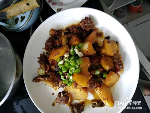 淋好油的柠檬炖土豆排骨即可上桌食用