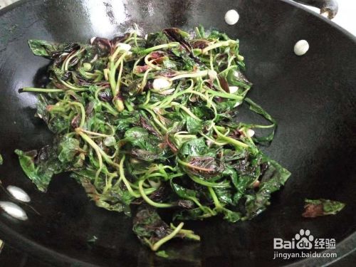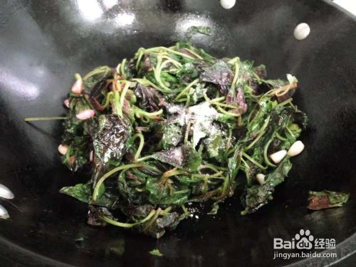待苋菜炒至九成熟时,放入适量的食用盐,继续炒半分钟,最后加入少量的味精,便可出锅了。