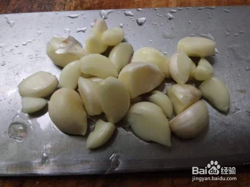 准备一些大蒜头,用刀压扁,让大蒜的汁水湛出。