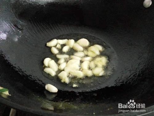 铁锅用小火烧热,加入适量的菜籽油,然后将大蒜头放入里面,煸出蒜味。