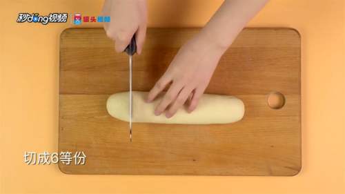 4用刀切成两块并揉成长条。