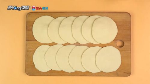 5用刀切成小块并擀成中间厚两边薄的面皮。