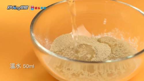 1碗中倒入适量的面粉、酵母粉、温水搅拌均匀,静置发酵15分钟。