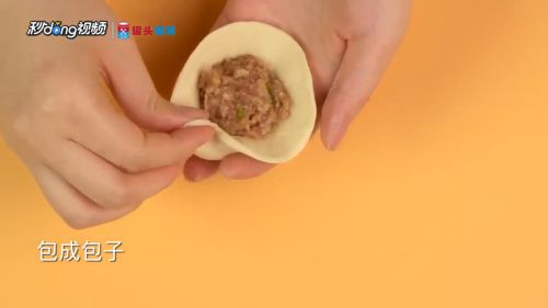 6将适量猪肉馅包在面皮内。
