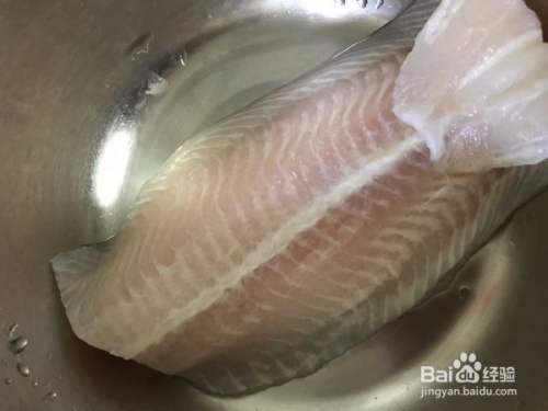 4将腌制好的鱼柳拿起沥掉水分放在淀粉上让两面都粘上淀粉,