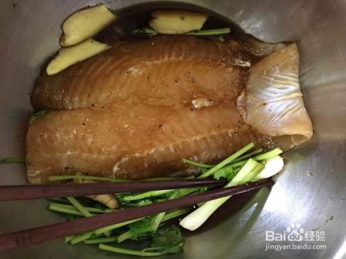 把之前腌鱼用的姜片和葱白都放入锅中煎香。