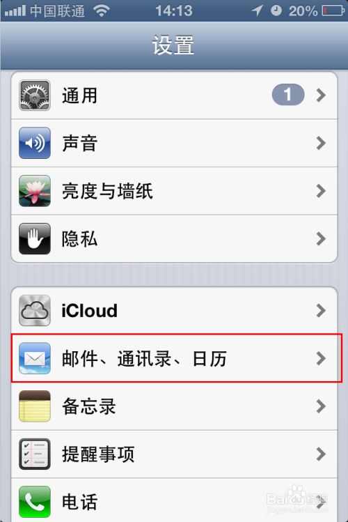 打开手机上的”设置”,选择“邮件、通讯目录、日历”