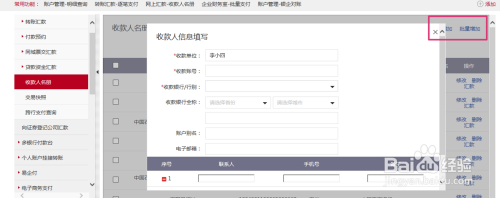 添加方式:部分银行直接在收款人信息界面录入收款人名册,部分银行需要从导航栏的收款人名册中添加。可以逐个添加也可以批量添加。