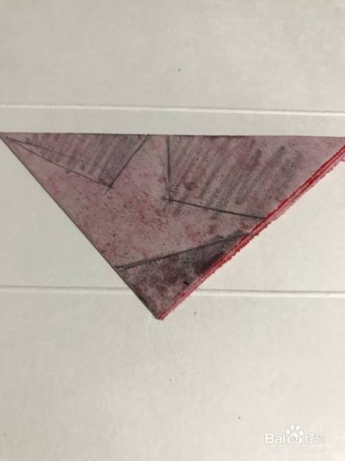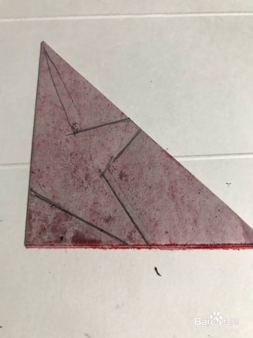 第三步 两角对折好之后 再把它整理一下 九十度的角摆放在左下角 然后拿起绘图铅笔画上半个五星花