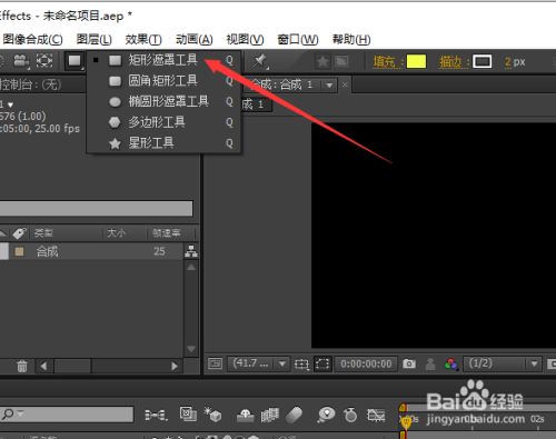 在快捷工具栏,点击图形工具,按住不动,在出现的菜单中,选择“矩形遮罩工具。”