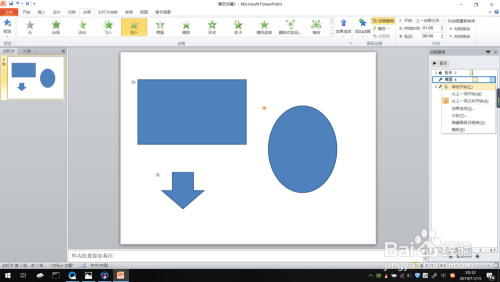右键我们需要更改的动画,通过它提供的方法进行顺序调整,“单击开始”表示单击后才出现动画效果,“从上一项开始”表示将这个动画与上一项动画同时开始,“从上一项之后开始”表示等上一项动画播放结束立即进行动画。