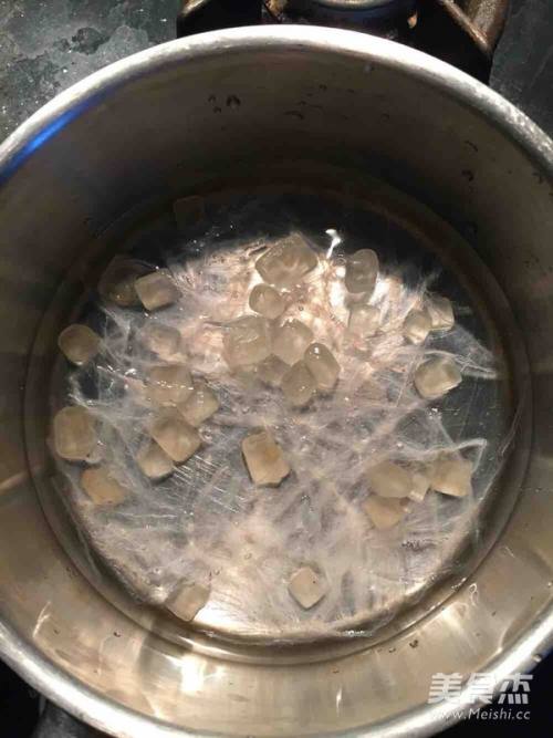 5将冷却下来的冰糖水倒入模具中,放入冰箱冷藏几个小时