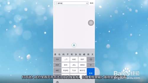 通过在支付宝地址栏里面搜索备用金,搜索之后选择进入即可,以下是详细的操作步骤: