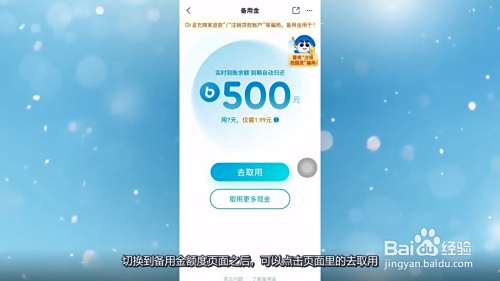 切换到备用金额度页面之后,可以点击页面里的去取用,这样就可以借用备用金额度了。