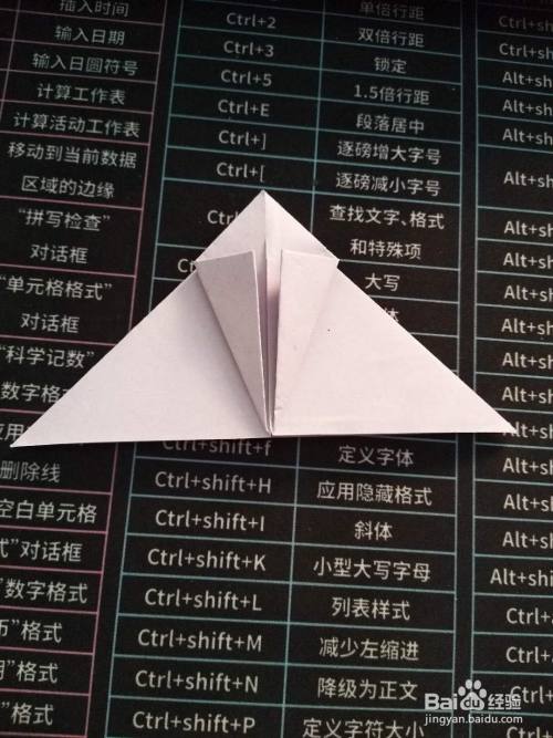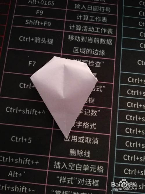 对着开口处吹气直到纸鼓起来,整理一下,简单的钻石就折好了。见下图