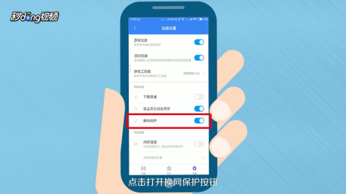 4找到“换网保护”按钮,点击打开,这样在玩游戏的时候切换网络会有一个游戏网络保护降低网络延迟的功能 。