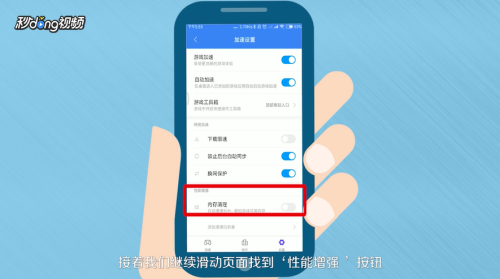 5接着继续滑动页面找到“性能增强”按钮,点击打开,这样可以使手机拥有着自动清理后台、增加游戏运行内存、提升处理器性、增加游戏流畅度等等功能 。