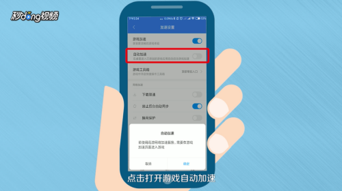 3进入到游戏加速设置页面后,找到“自动加速 ”按钮,点击打开游戏自动加速,这样直接打开游戏的时候就会进入到游戏加速模式 。