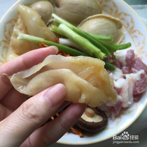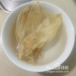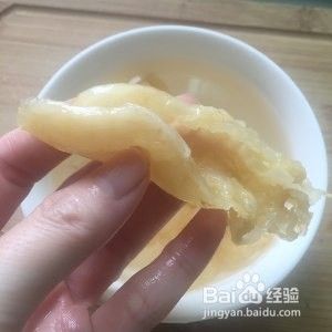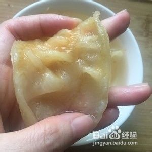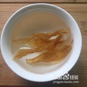 把鱼胶剪开,去除油渍。再焯水3分钟,再泡冷水3小时-5小时