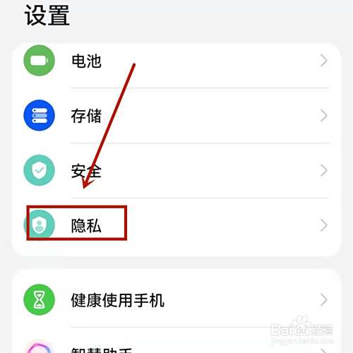 在手机设置中,滑动页面进入隐私选项。