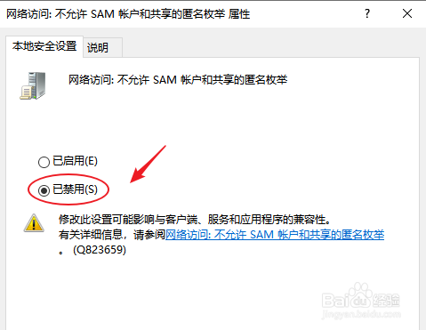 介绍win10如何启用不允许 SAM 帐户和共享的匿名枚举。