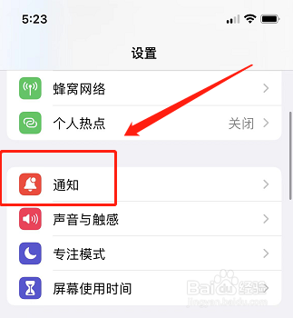 进入苹果手机设置页,点开“通知”界面。