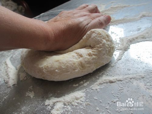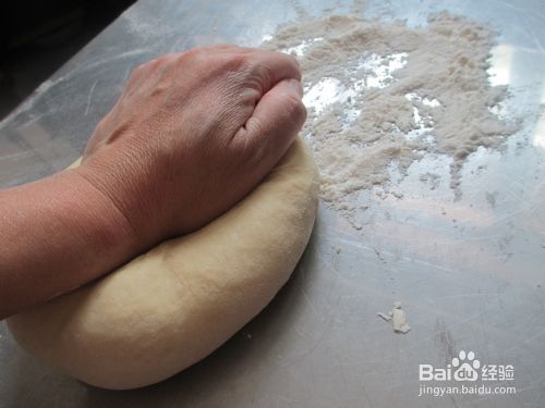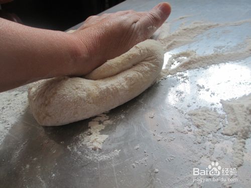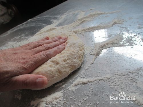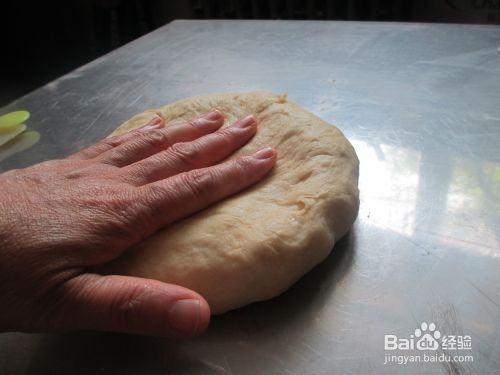 只需5分钟,面团不粘手就好了。 我的手法就是先按扁。折叠再按扁。如此反复。看,面团已经不沾手了。