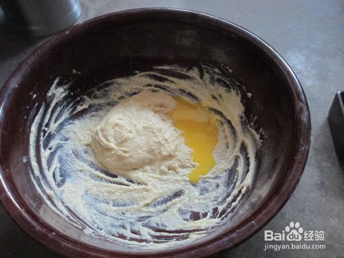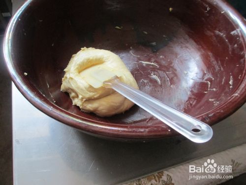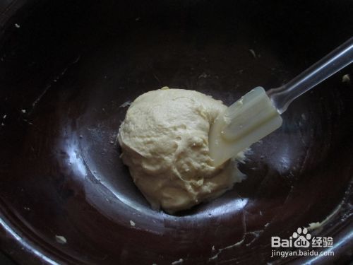 所有的食材都放在一个盆里,随意搅拌均匀即可,不要求手法,也不用揉。最后把融化的黄油拌入。